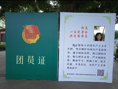 图二:重庆曾德会女士在四川内江大洲广场重温入团场景