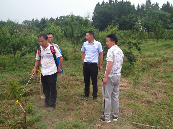 图二:唐才亮(右2)指导村民喷洒酵素有机肥
