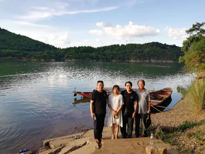 图三:唐良闻、甄仕荣、胡莽陪同荣氏家族办公室主任陶美云考察湘江