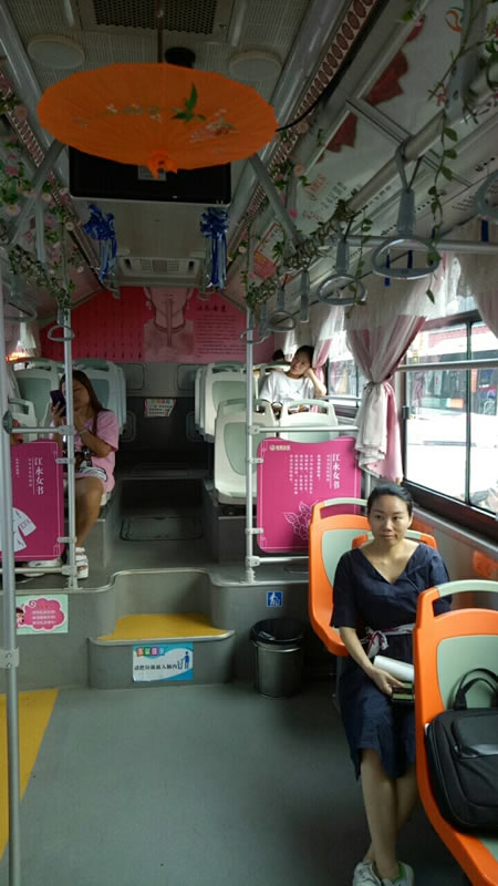 图六:七夕节“国际创意文化之乡”永州的女书公交车