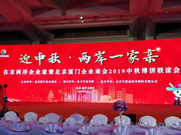 2019年8月31日, 由北京厦门企业商会、东方环岛集团联合主办的“迎中秋-两岸一家亲在京两岸企业家暨北京厦门企业商会2019中秋博饼联谊会”在北京嘉里大酒店隆重举行。北京厦门企业商会会长蒋清林致欢迎词,中国民族贸易促进会会长蓝军出席开幕式并致辞。出席此次活动的有隋绳武、刘顺达、李昭玲、陈春玖、路政闽、朱守道、张文祥、郑昭红、兰海滨、赵刚、陈联真……,海峡两岸知名企业家等600余人,共同出席了“迎中秋-两岸一家亲在京两岸企业家暨北京厦门企业商会2019中秋博饼联谊会”的活动,以此来迎接我国传统的中秋佳节的到来。