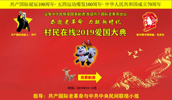 共产国际老革命与中共中央民间联络员、村民在线2019爱国大典发起人唐开元向崇尚红色文化的刘建吉主席发来贺电,祝贺活动圆满成功!并邀请刘主席参与村民在线2019爱国大典,邀请中国老区建设基金会、中国杰出刘氏宗亲联谊会、国际华人华侨联合总会等爱国机构择机组团带着红色老区的甘露,参与倡导重阳民间诗酒节,到成都为即将出山的中华洞府老革命献酒。 (撰稿:刘忠诚、习英豪 编辑:唐良闻、甘当梯) |