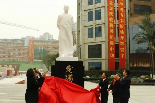 1230日上午,在重庆市育才中学的行知广场举行了陶行知先生汉白玉雕塑像揭幕仪式。来自北京、南京、上海、辽宁、安徽、陕西、广西等省市以及美国、韩国的嘉宾代表200余人,共同为陶行知先生汉白玉雕塑像,举行了隆重的揭幕仪式。