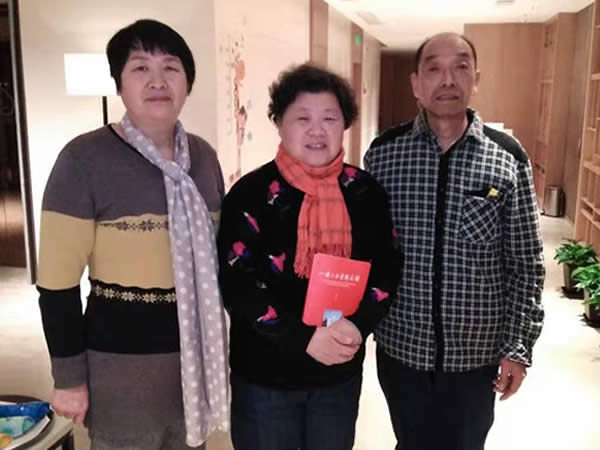 图9:刘友开陈素珍夫妇向陶行知先生孙女陶铮老师(中)赠诗集