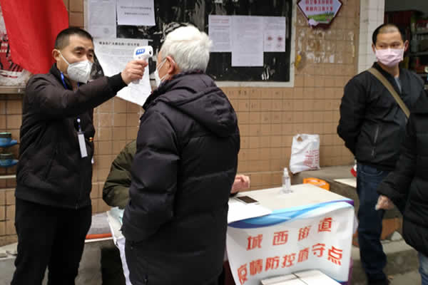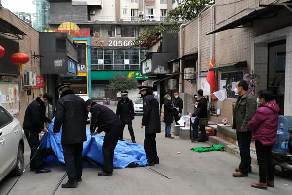 图五:内江市桂湖街农贸市场严阵以待检查出入人员