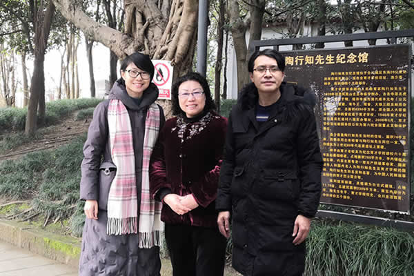 图三:(左起)重庆市合川区育才学校沈小燕校长、《中国陶行知研究》常务副主编叶晓媚、副主编唐开元