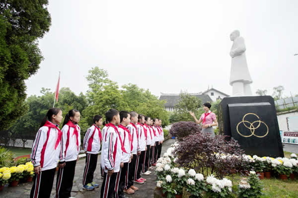 图一:重庆市合川区育才学校内高耸的陶行知先生雕像