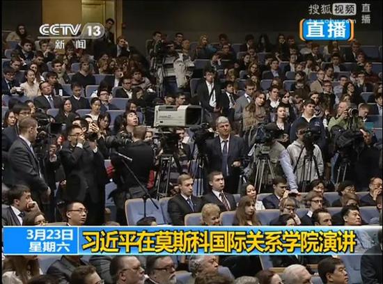 图二:习主席2013年3月23日莫斯科国际关系学院演讲盛况